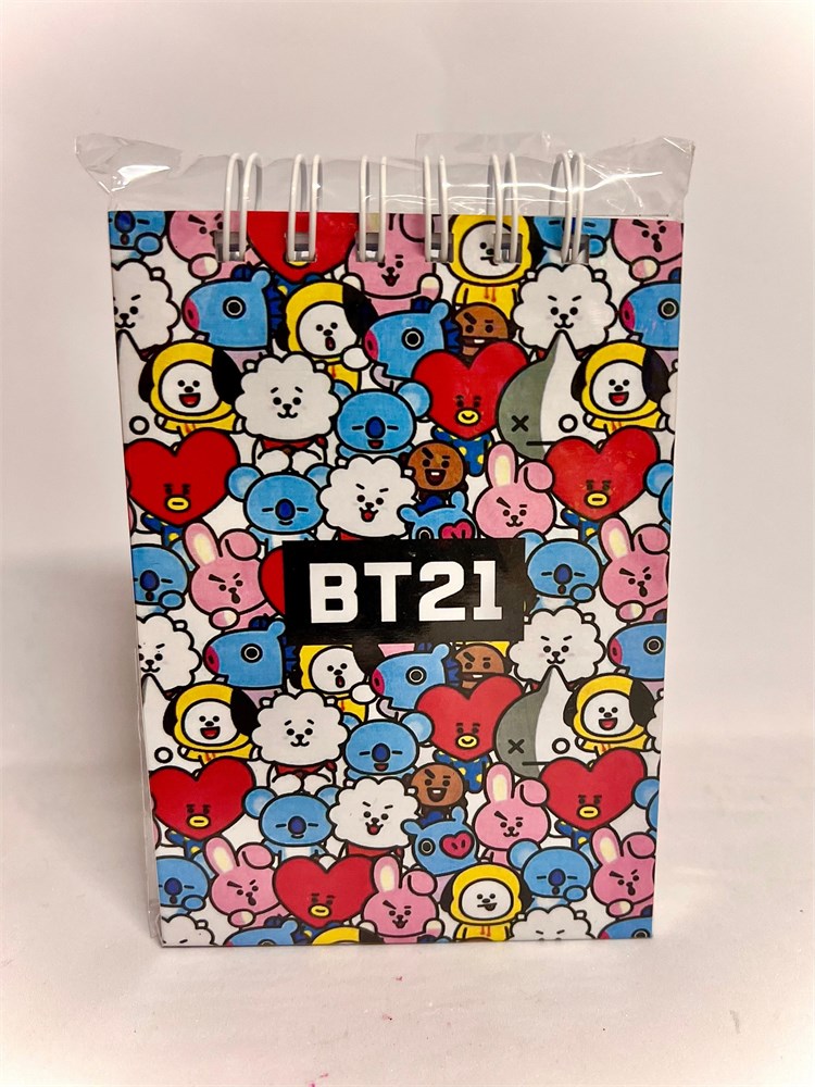 Com uma capa cheia de cores e decorada com os encantadores personagens criados pelo BTS, ele oferece páginas em branco ideais para anotações rápidas, listas e lembretes. Compacto e prático, este bloquinho é também um item de colecionador, trazendo a alegria e o estilo dos BT21 para o seu dia a dia.