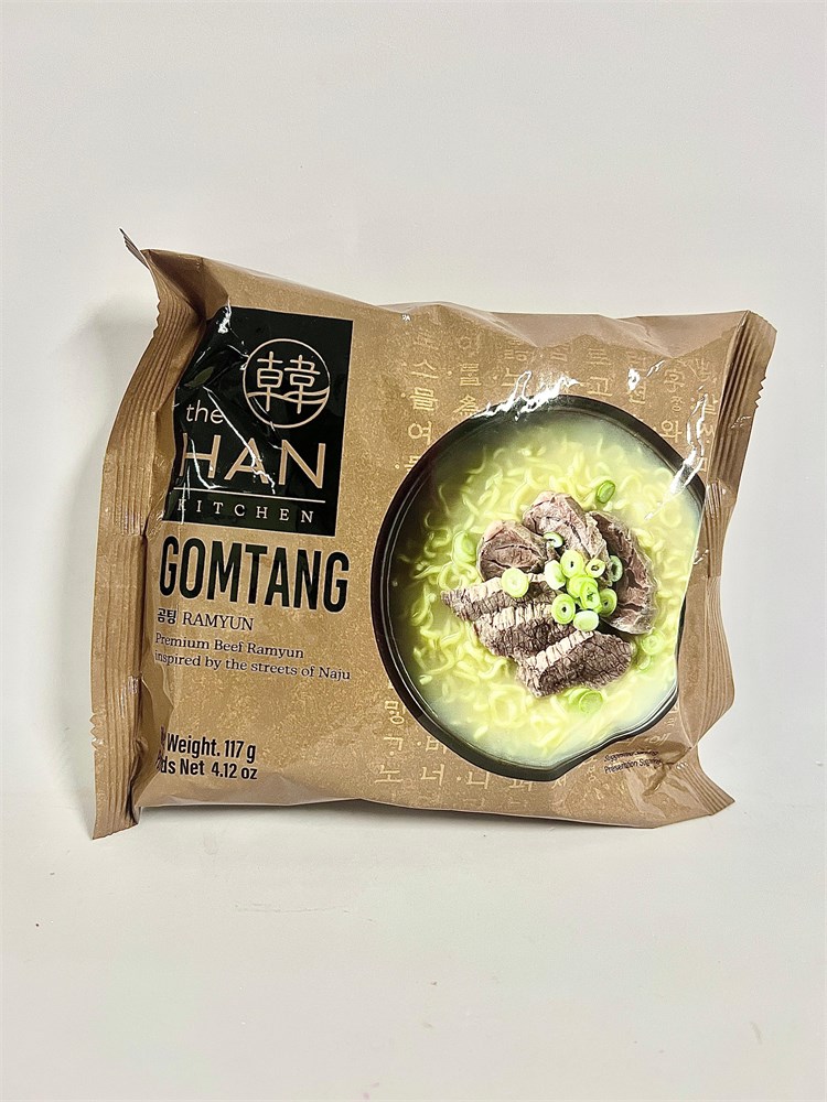 Desfrute do sabor rico e reconfortante do Ramen 117g Han, uma sopa instantânea inspirada na clássica Gomtang coreana — um caldo leve e nutritivo feito com ossos de boi, perfeito para aquecer o corpo e o paladar.